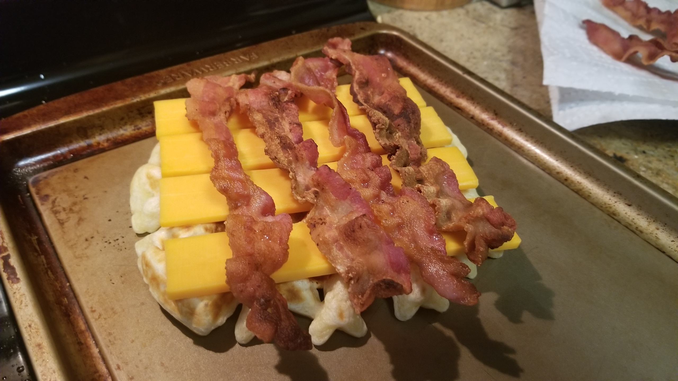 Fifty Shades of Bacon: Bacon Cheddar Waffle Sandwiches