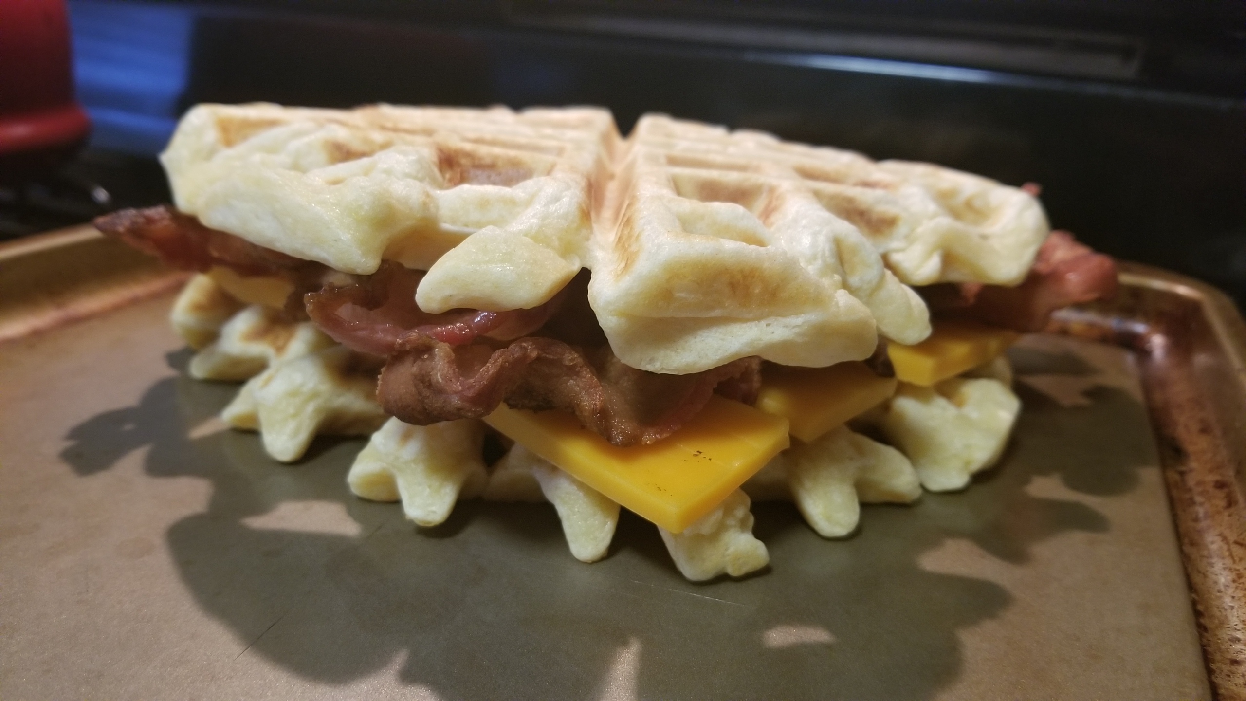 Fifty Shades of Bacon: Bacon Cheddar Waffle Sandwiches