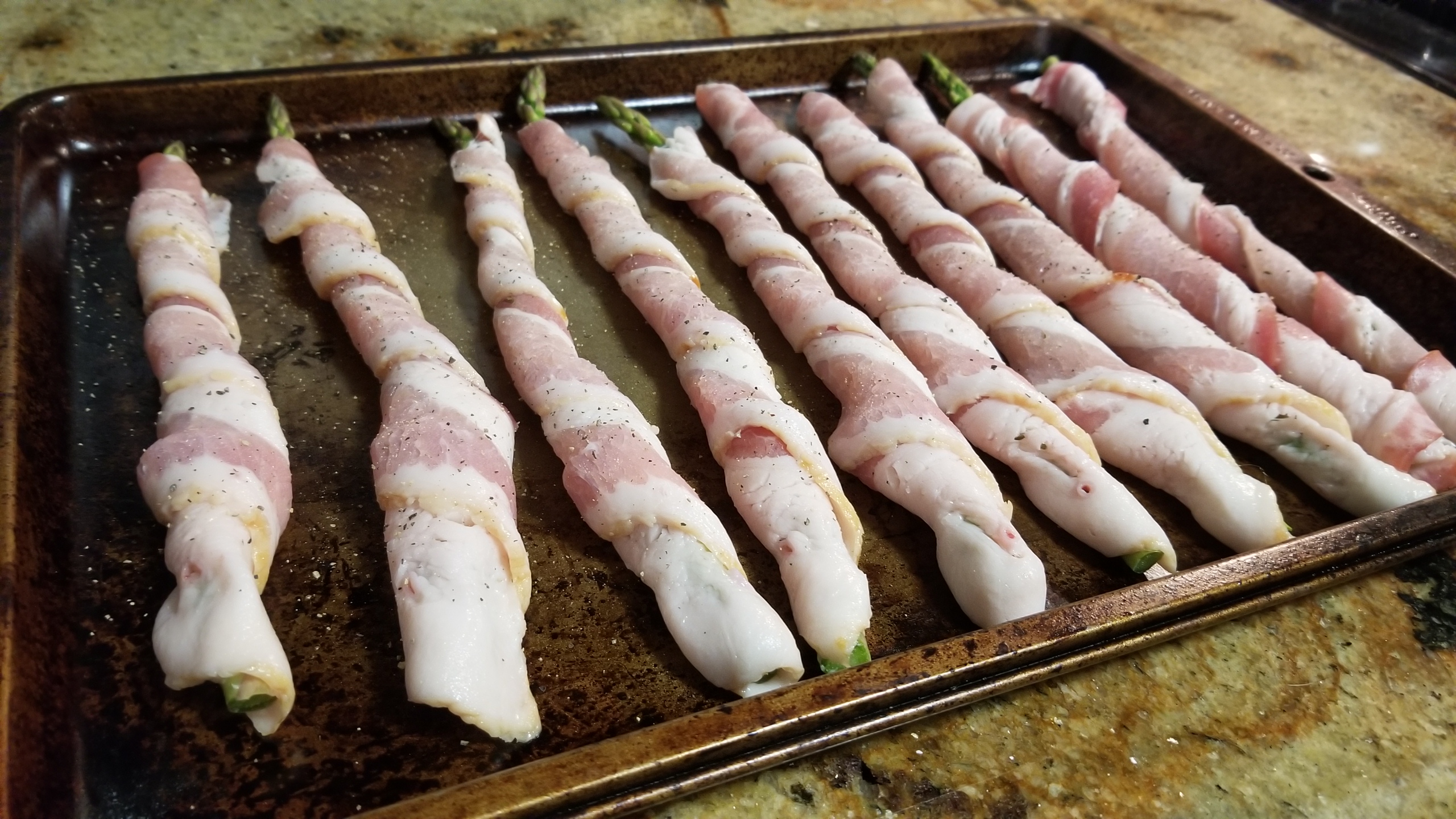 Fifty Shades of Bacon: Bacon Meatloaf & Bacon Wrapped Asparagus with Sauce