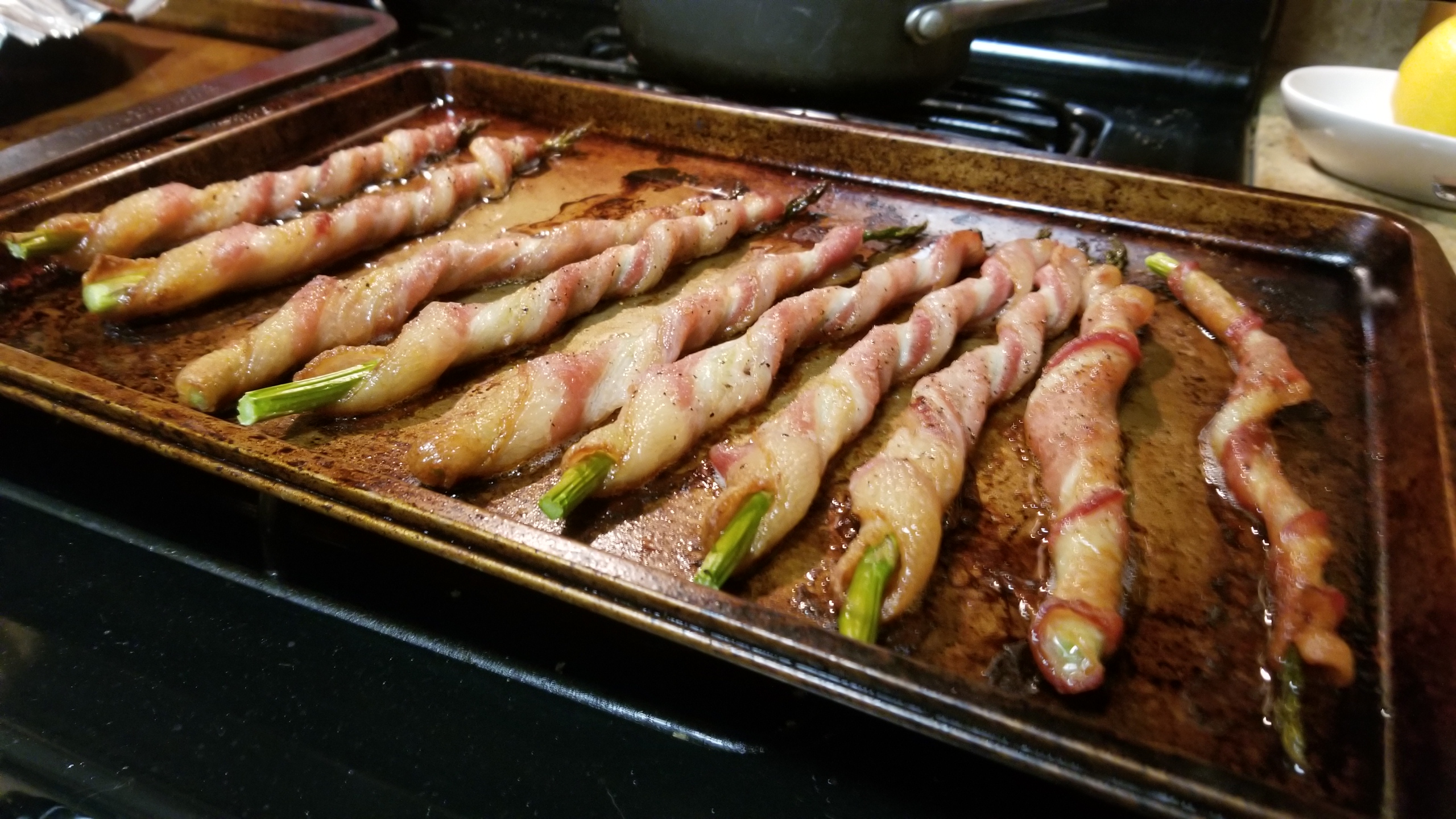 Fifty Shades of Bacon: Bacon Meatloaf & Bacon Wrapped Asparagus with Sauce