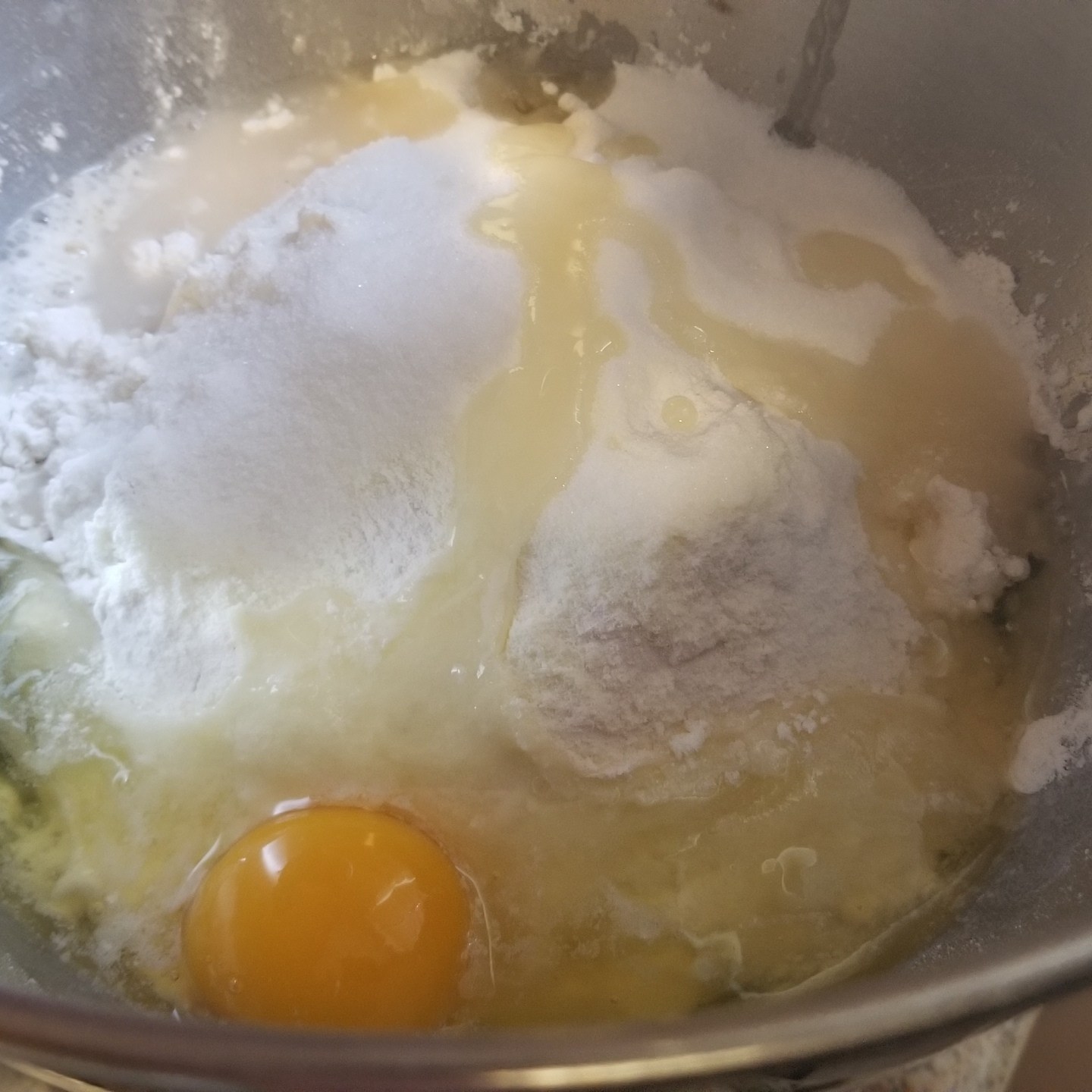 Warm water and yeast are combined first, and once bubbling flour, powdered milk, sugar, salt, and egg are added. It’s mixed together for 10 minutes using an electric mixer fitted with a dough hook. I thought 10 minutes was a bit overkill, but left it in that long anyway just in case.