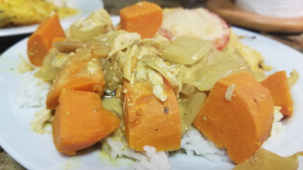 I love coconut curry, and this was delicious. I would cut the sweet potato into smaller chunks next time, but that was about it. My husband thought there was too much sweet potato for his liking, and that was the only part he didn’t like about it.