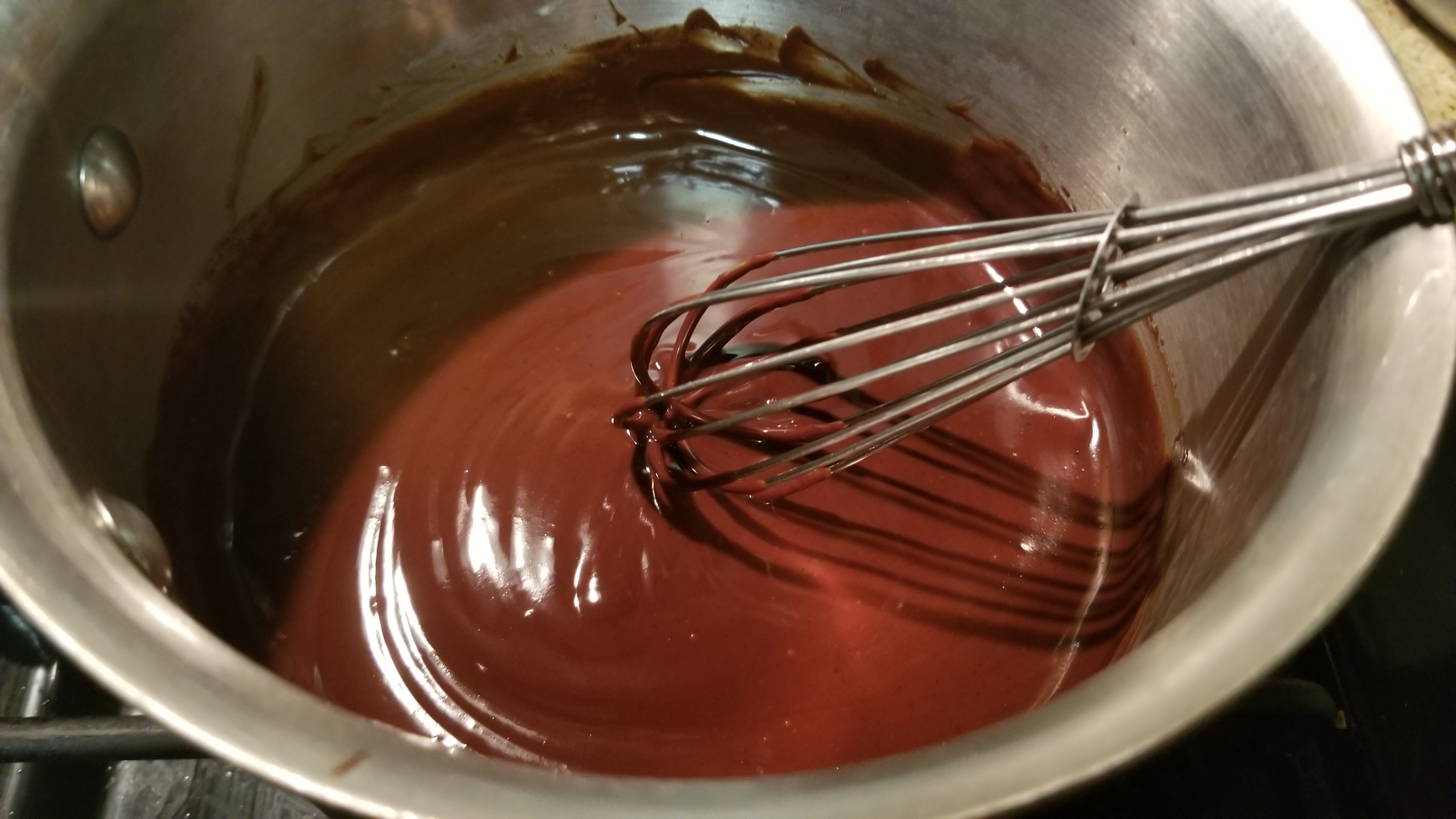 For the chocolate sauce, simply heat the chocolate and heavy cream until smooth and blended. That’s it!