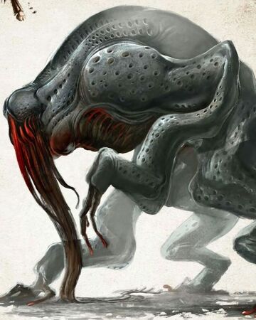 In H.P. Lovecraft’s stories, the moon-beasts are toad-like creatures without any eyes and a mass of pink tentacles at the end of their snout.