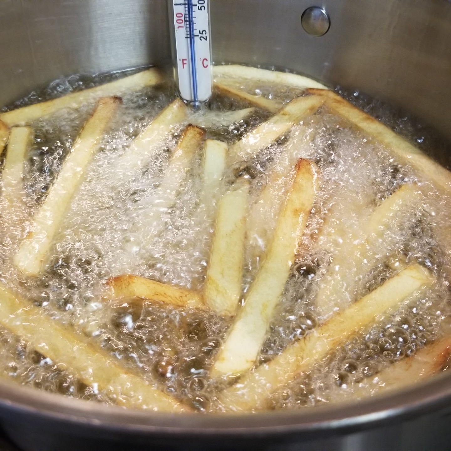 The most important and challenging thing (in my opinion) is keeping an eye on the temperature of the oil. Too hot and they’ll burn on the outside before they cook in the inside, and if the oil is not hot enough the fries will be under-cooked.