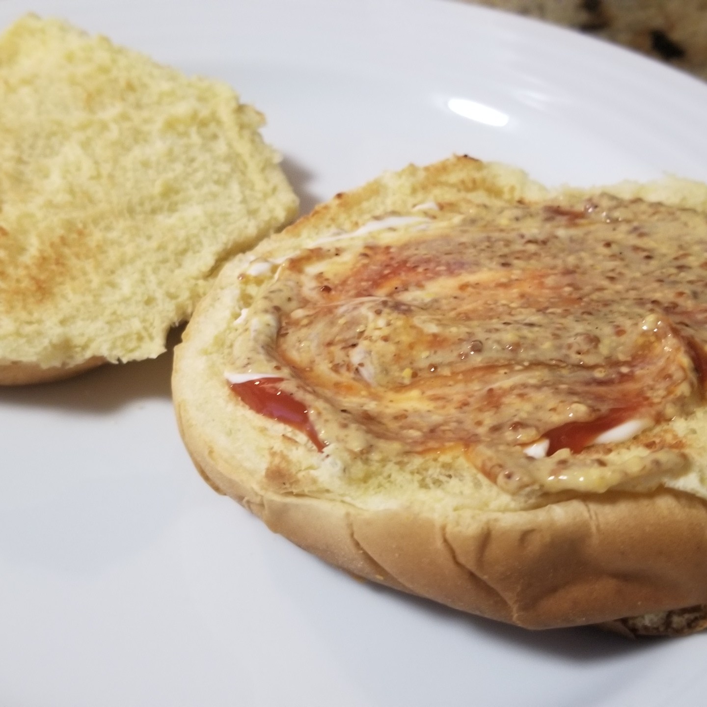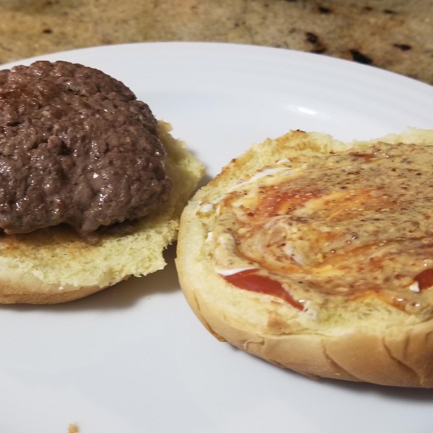 While the burgers cook, the burger buns are lightly toasted and the mayo, creole mustard, and ketchup are smeared on buns. I had to order the creole mustard on Amazon since stores here don’t carry it, but it was so worth it!