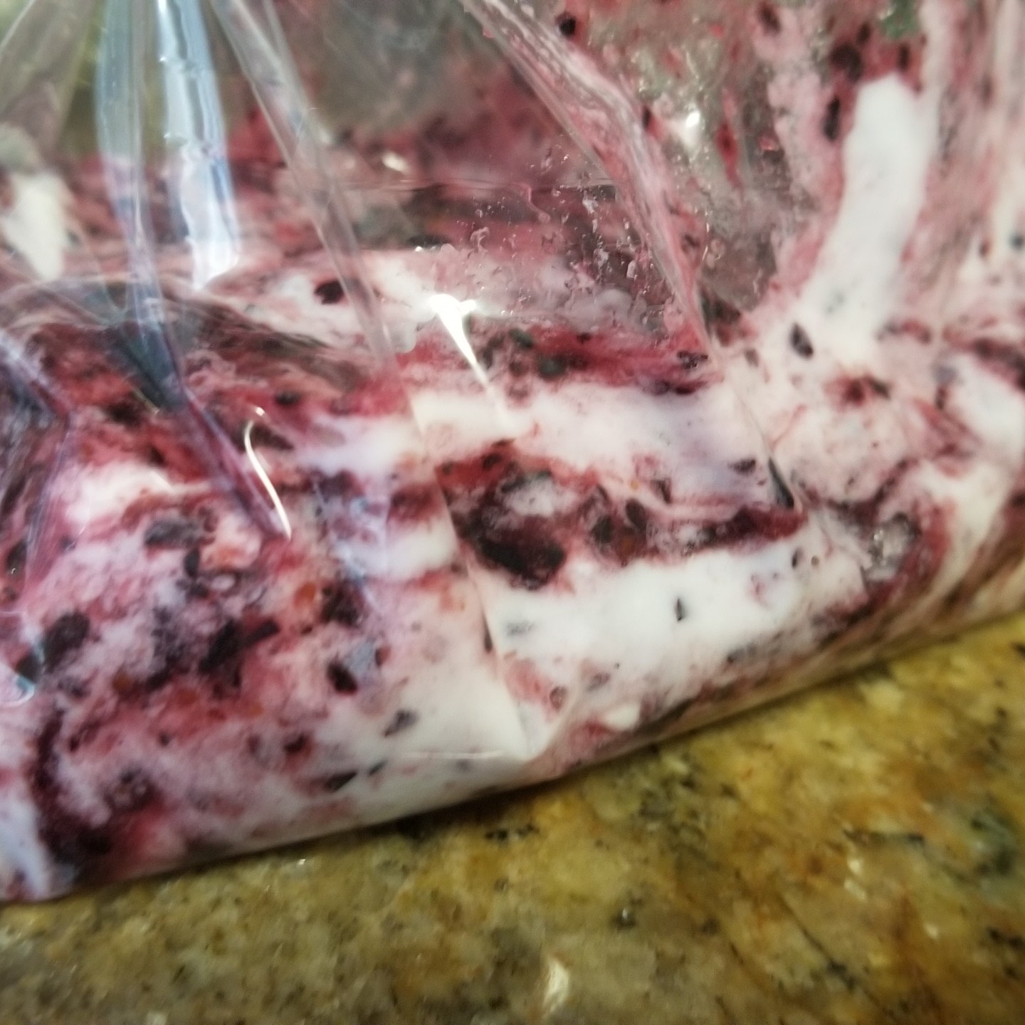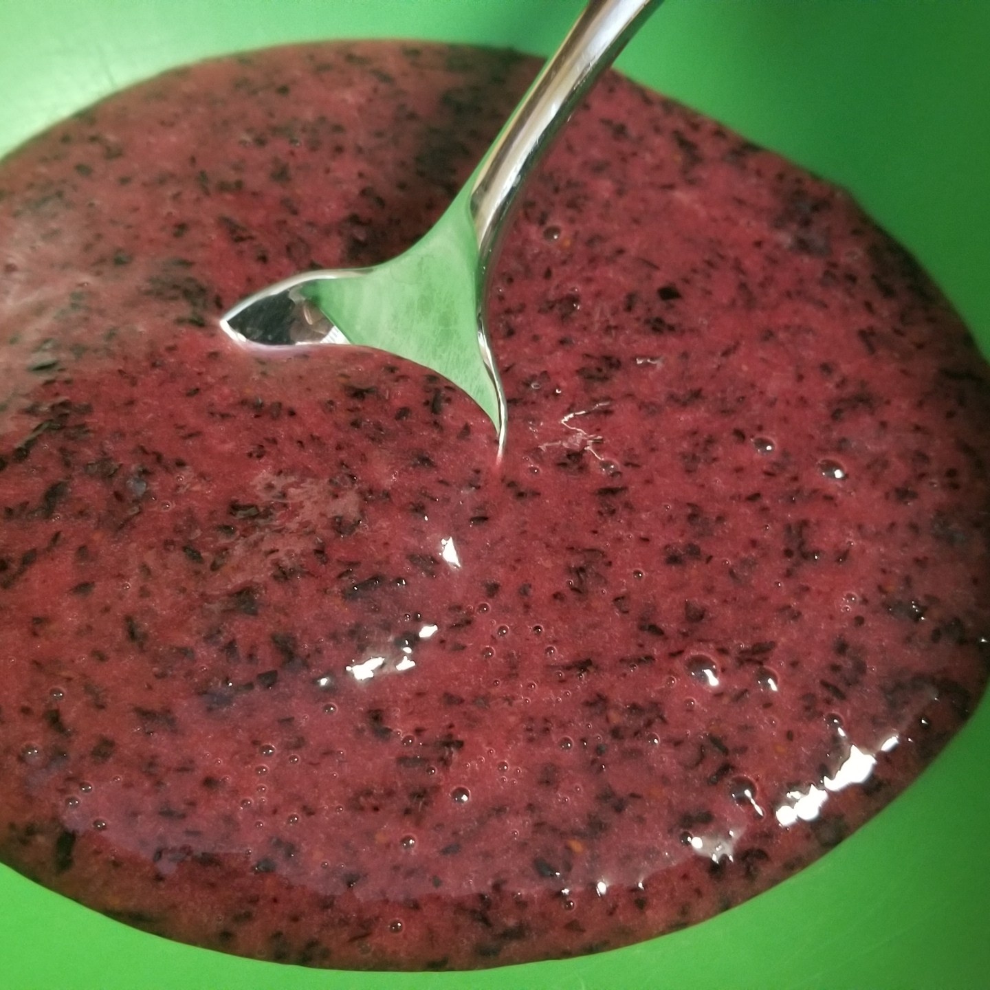 First step: blend the blueberries and mix with agave (I used honey instead).