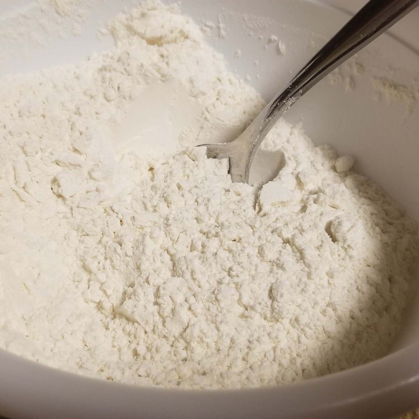 The wet ingredients are mixed together (excluding the sour cream) in one bowl, the dry in another, and then the dry mixture and sour cream are added to the wet mixture in batches until combined. Chopped apples are then mixed in. This batter is scooped into the muffin tin.