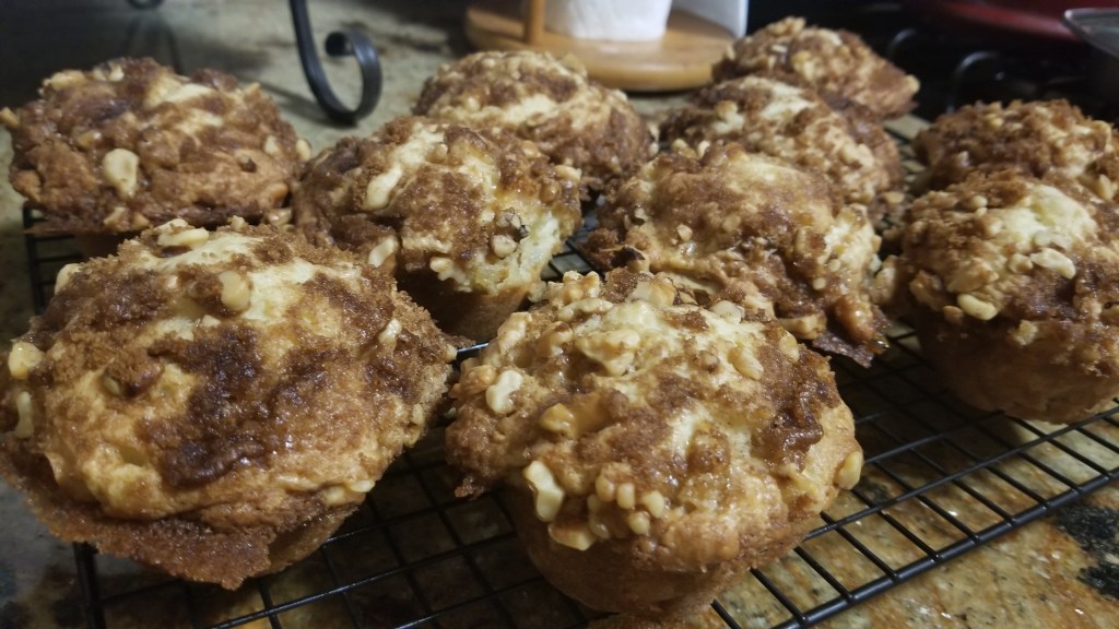 These were very, very good. The topping was my favorite part, and the cake itself was moist and delicious. The only change I would make is adding more cinnamon spice.