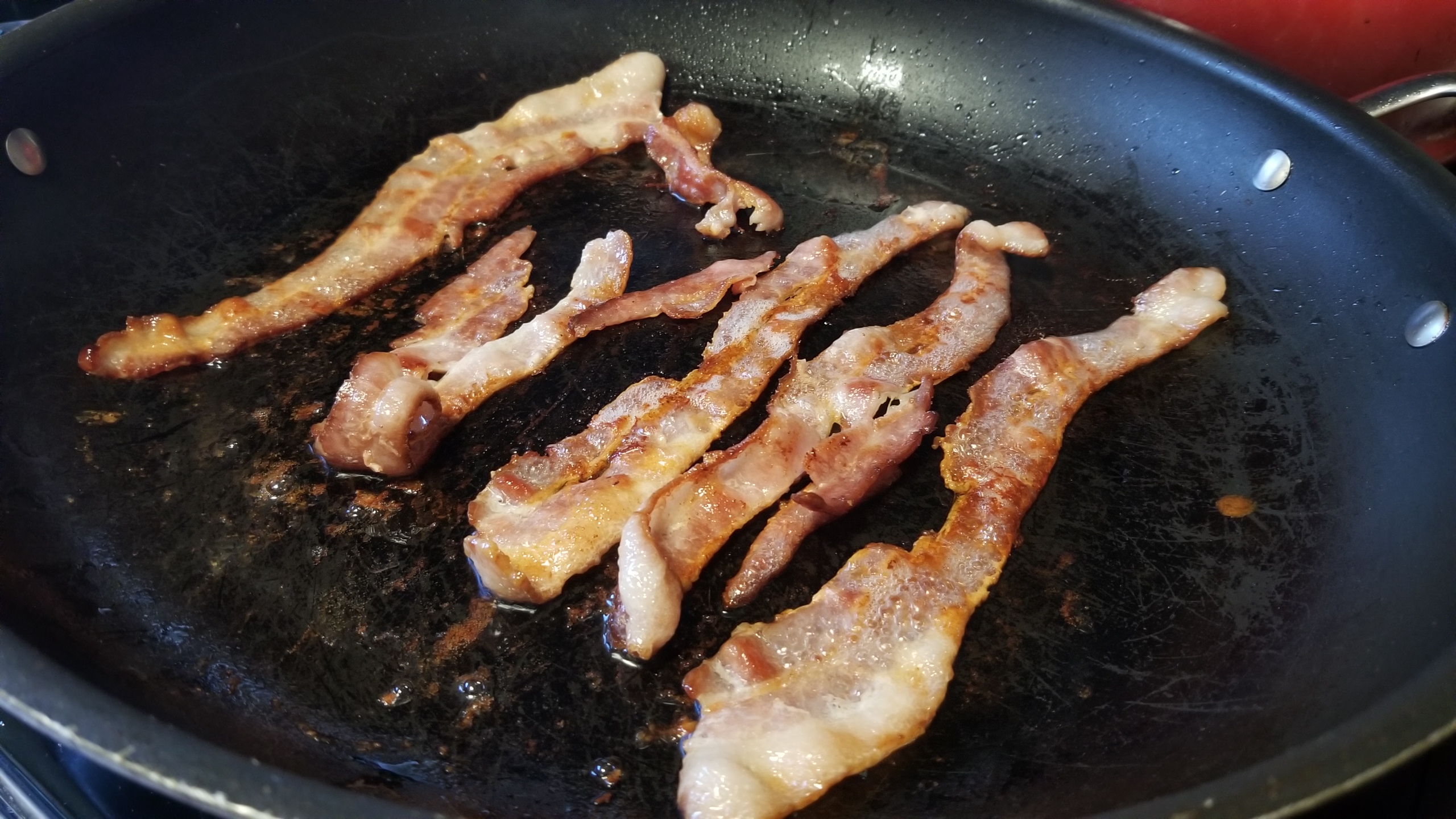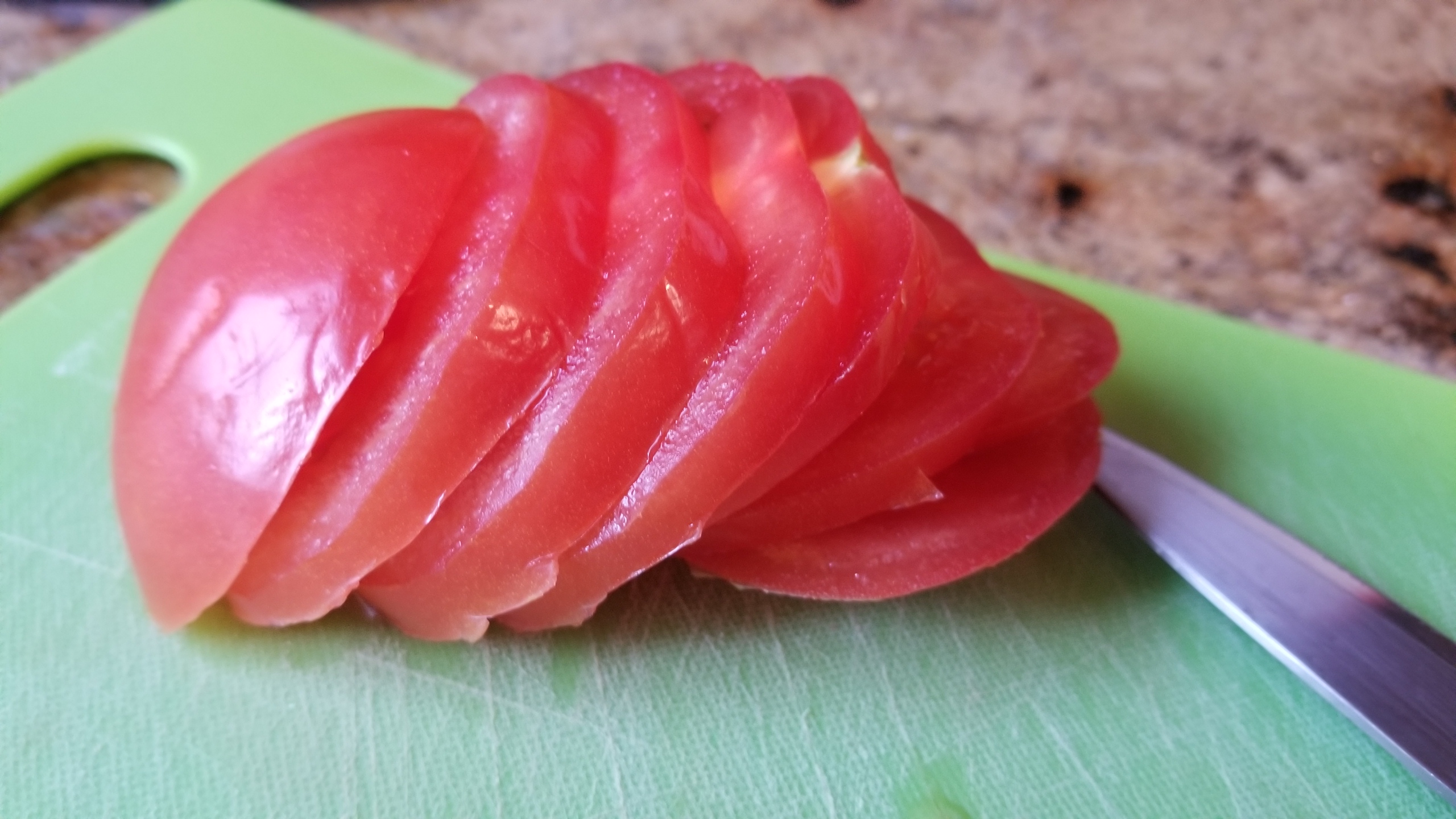 I cooked the bacon, sliced up the tomato, and rinsed the lettuce leaves first to prepare the ingredients.