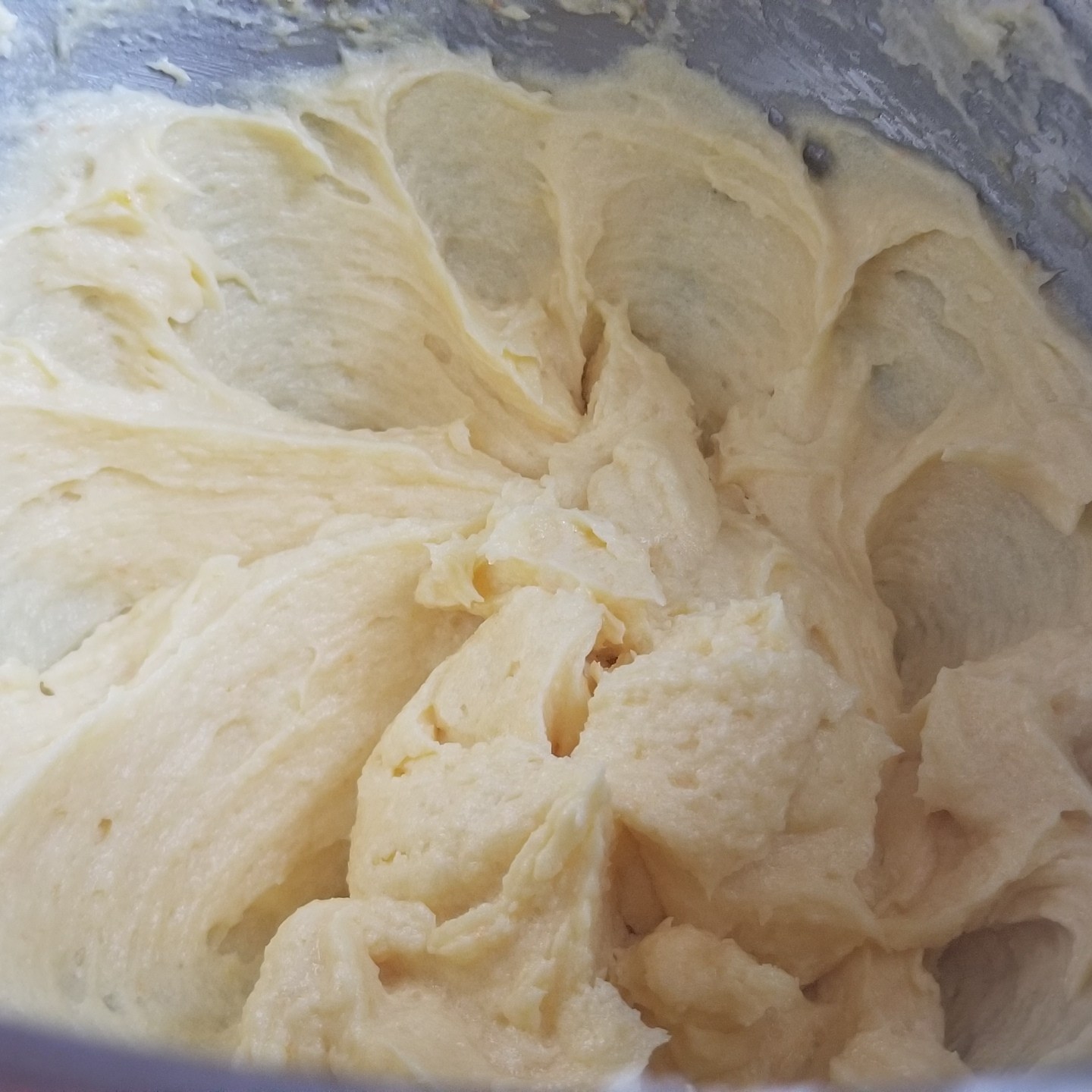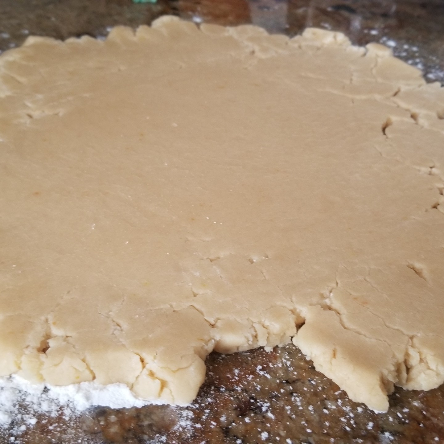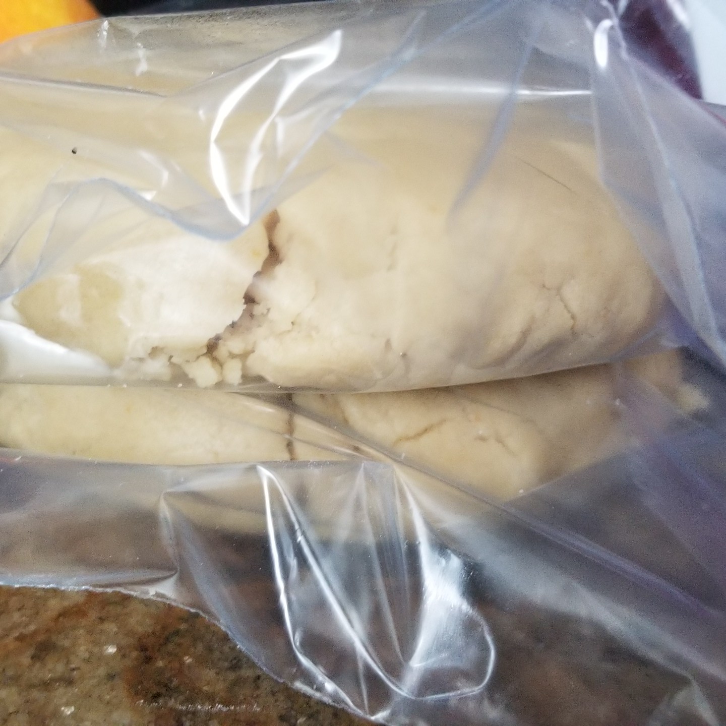 The dough is the same recipe used to make her Easter cookies. All the ingredients are combined in the mixer, and then the dough is formed into two discs and refrigerated.
