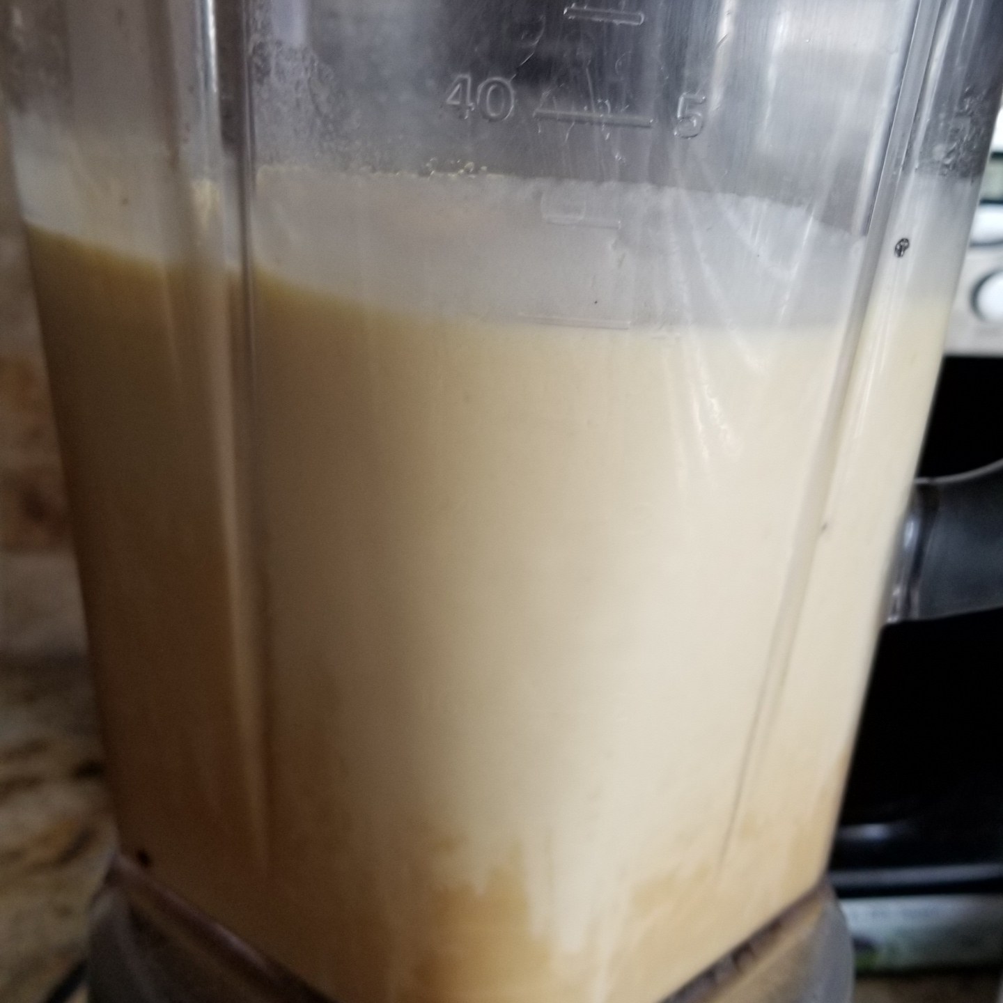 The banana is chopped, tossed with lemon juice and then popped in the freezer until frozen. After that, just toss everything in the blender and blend!