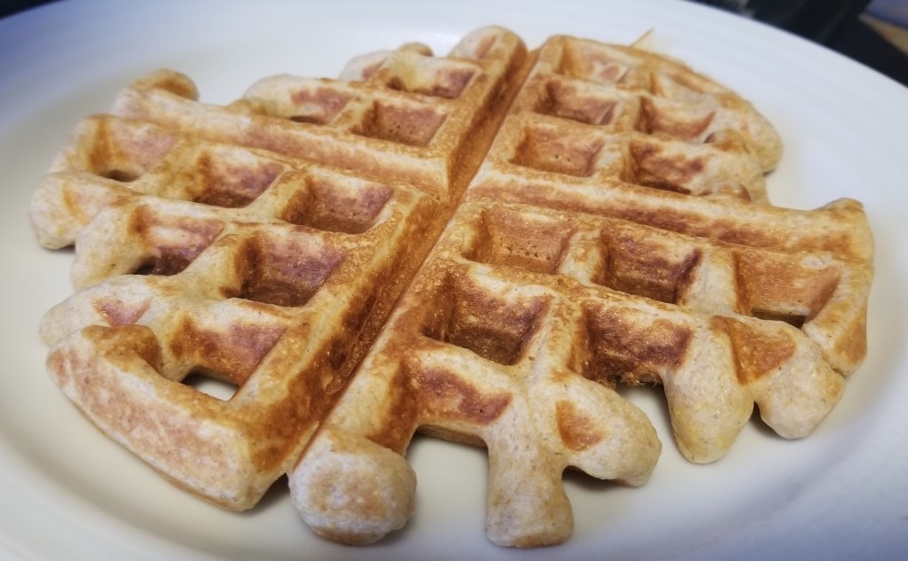 The recipe suggests it should make about 5 waffles, but I only got 4 thin waffles – I would double the recipe next time and add more batter in each time.