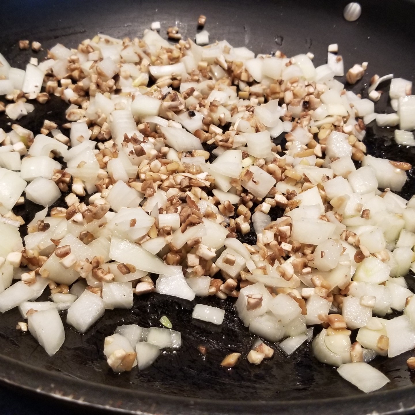 The mushrooms and onions are sauteed, and then vinegar is added to the pot. It’s cooked until the vinegar is absorbed / evaporated.