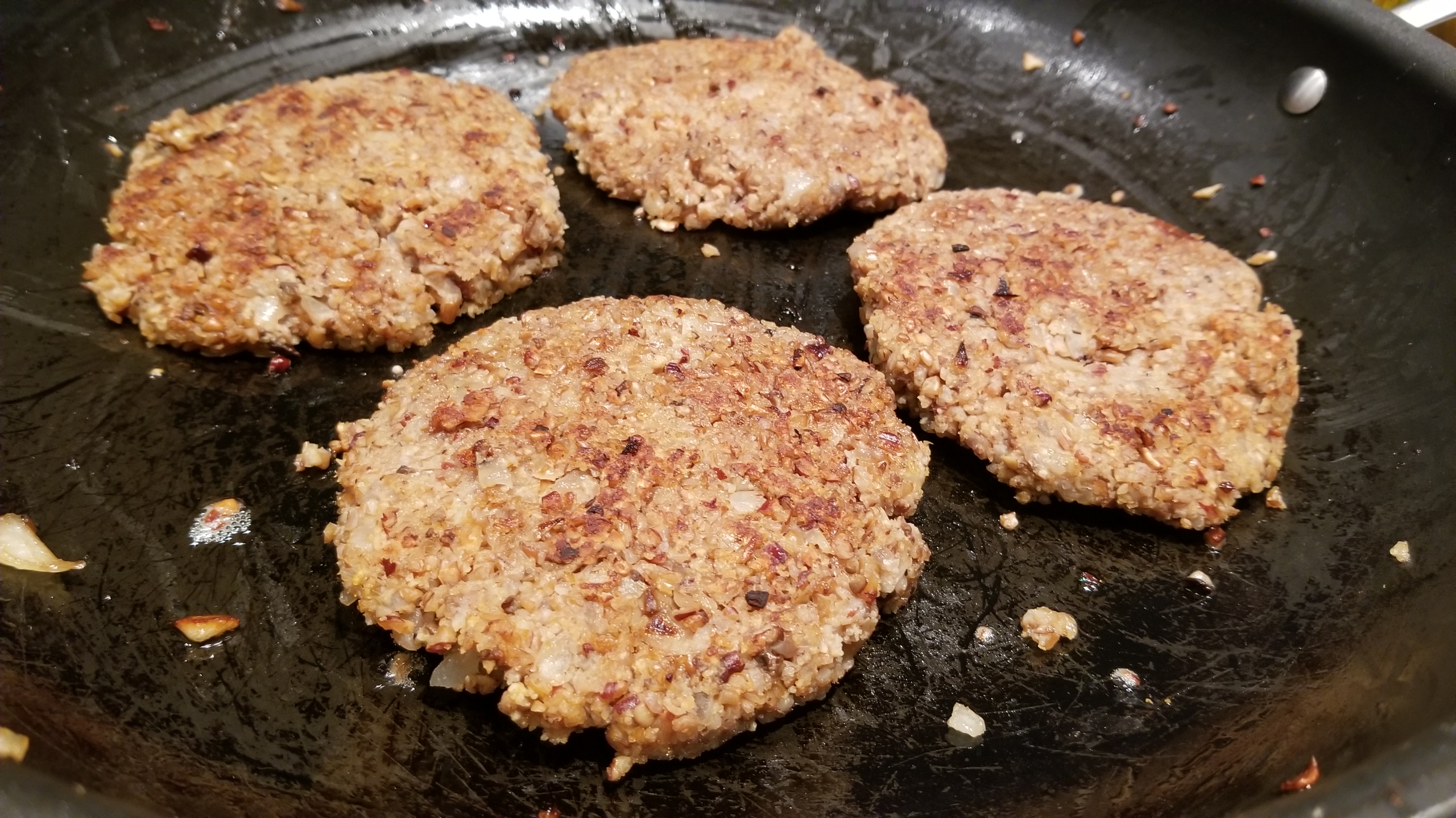 There’s nothing too difficult about these burgers, but it was a little challenging getting the patties to stick together and they did crumble a bit in the pan while cooking.