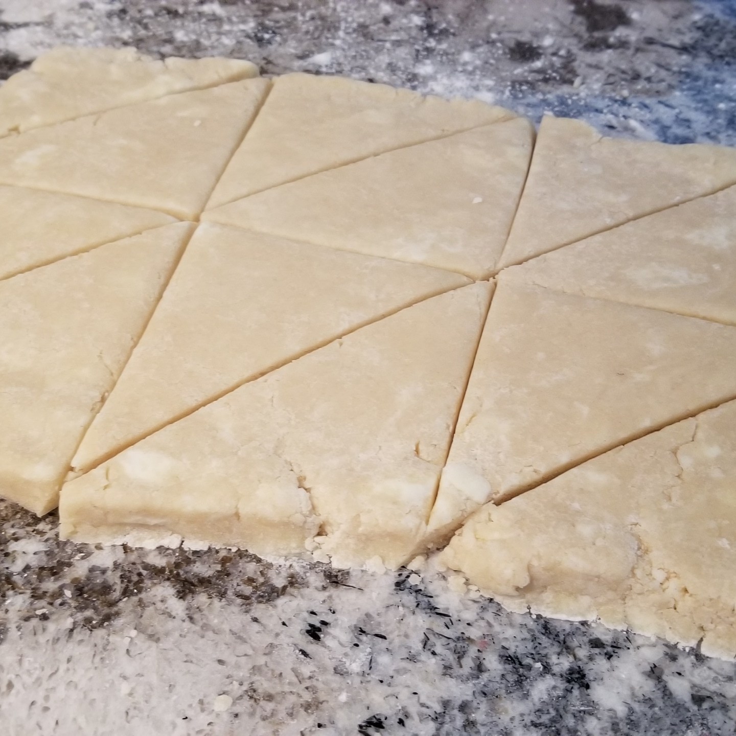 The dry ingredients are mixed together, cold butter is cut in with a pastry cutter, and then the wet ingredients are added. My dough was a bit too crumbly at first, so I drizzled in some more heavy cream to get it to stick a little better.