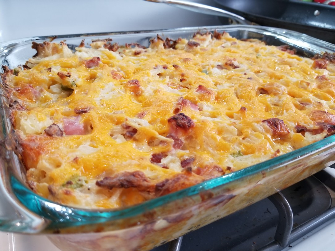 A review of Cheesy Meaty Hash Brown Casserole from the Unofficial Hunger Games cookbook.