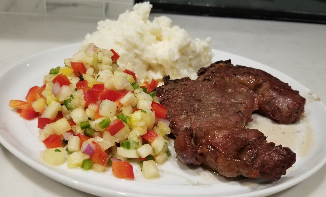 A review of Pete’s Pineapple-Marinated “Caribou” with Pineapple Salsa from the Orange is the New Black Cookbook.